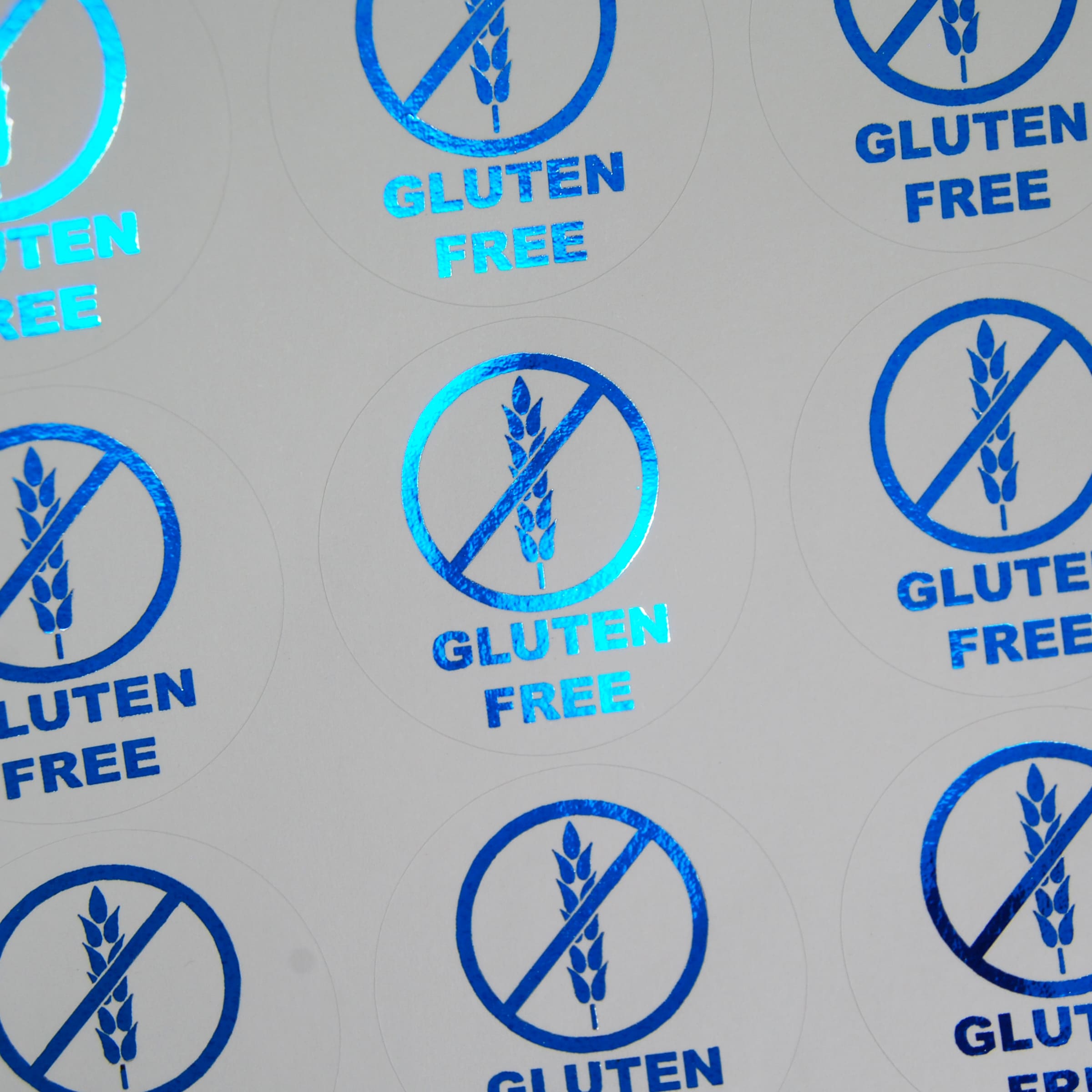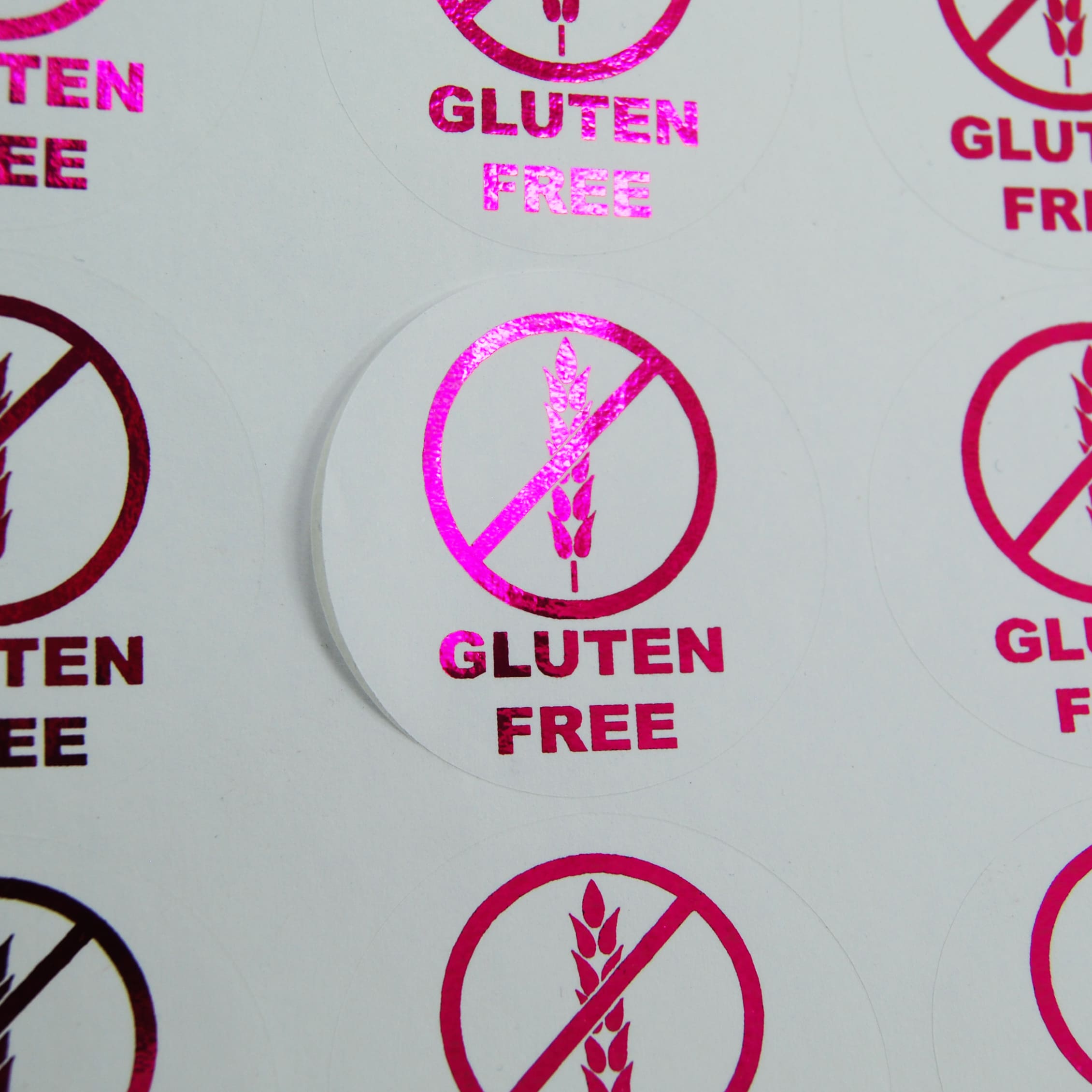 Smooth matt ultra white paper sticker with a luxury 1200dpi foil print. This provides a crisp, high quality, professional finish.