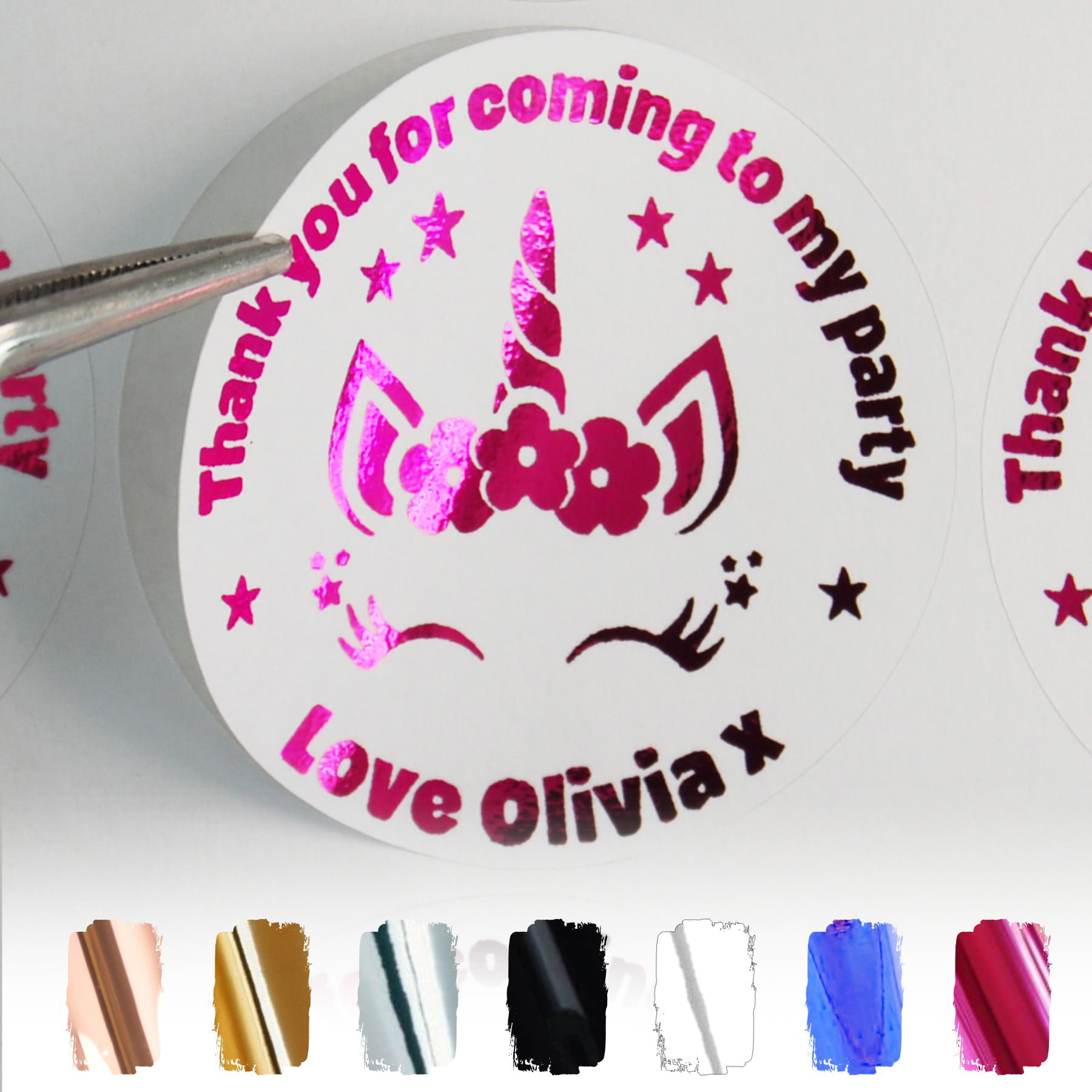 Unicorn Party Stickers Personalised with your custom text on the bottom